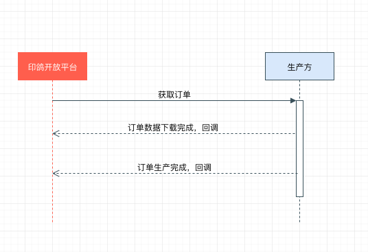 产品需求 印鸽产品需求类目主要有以下类目: 照片 相册 照片书 定制品(T恤、手机壳、定制贴纸等) 各类标品 合作流程 联系印鸽BD或供应链人员,洽谈合作事宜,并获取开放平台提供的接入参数(factoryId,secret) 接入流程 获得接入参数(factoryId, secret) 确定对接产品参数(productId, productName) 接口开发 生产测试,印鸽会测试用户下单至物流签收完成流程 正式投入生产 接口调用关系